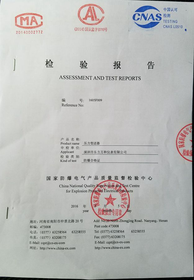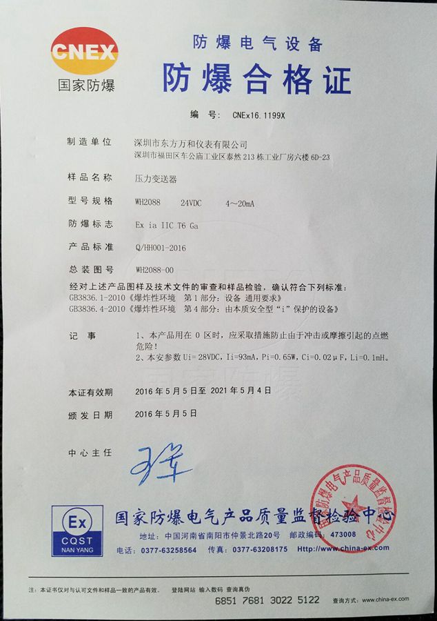为了进一步增加公司产品的核心竞争力,万和仪表在16年5月5日通过国家防爆电气产品质量监督中心的认证,取得了本安防爆合格证,防爆标志为Ex ia IIC T6 Ga 证书编号为GNEx16.1199X