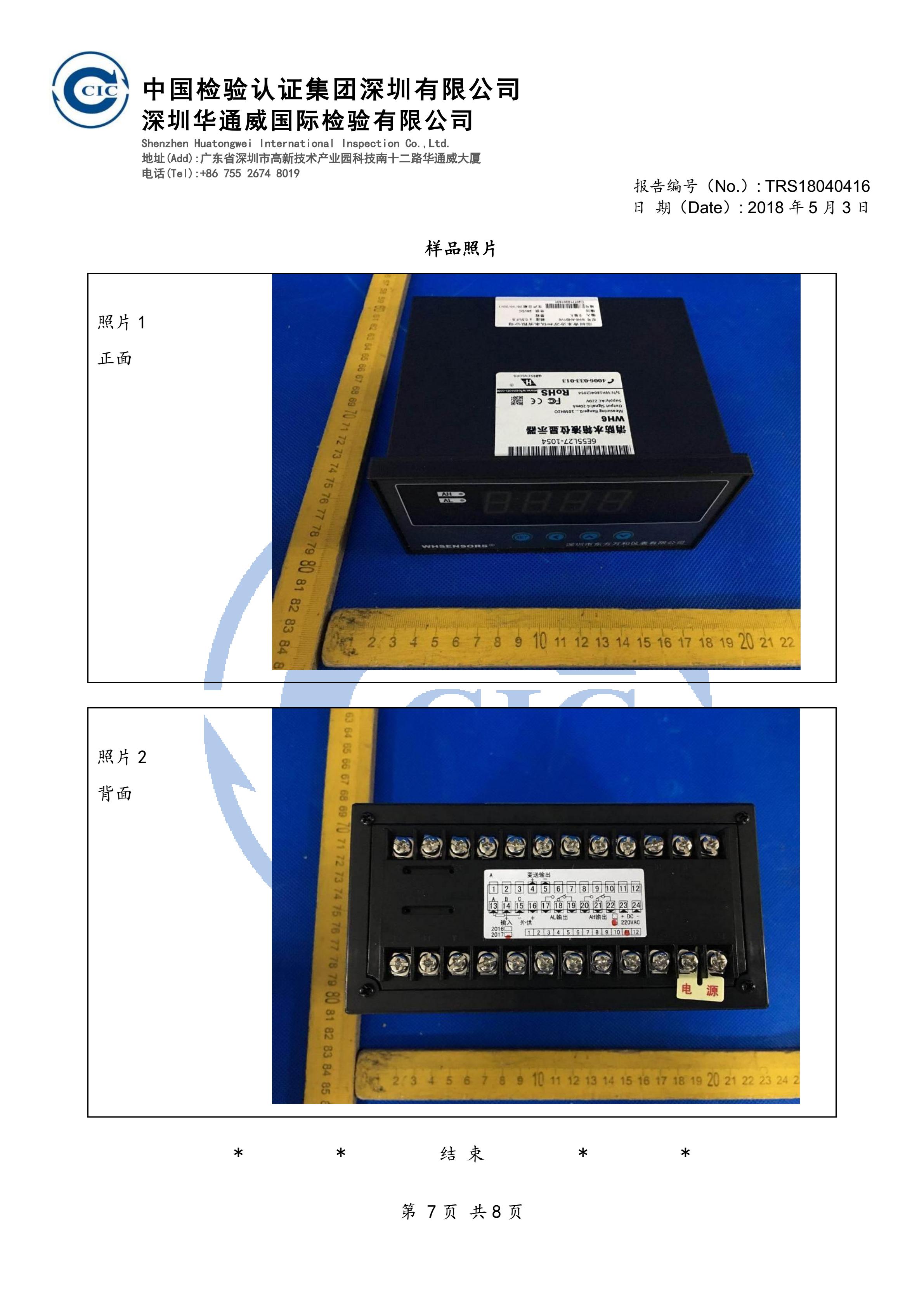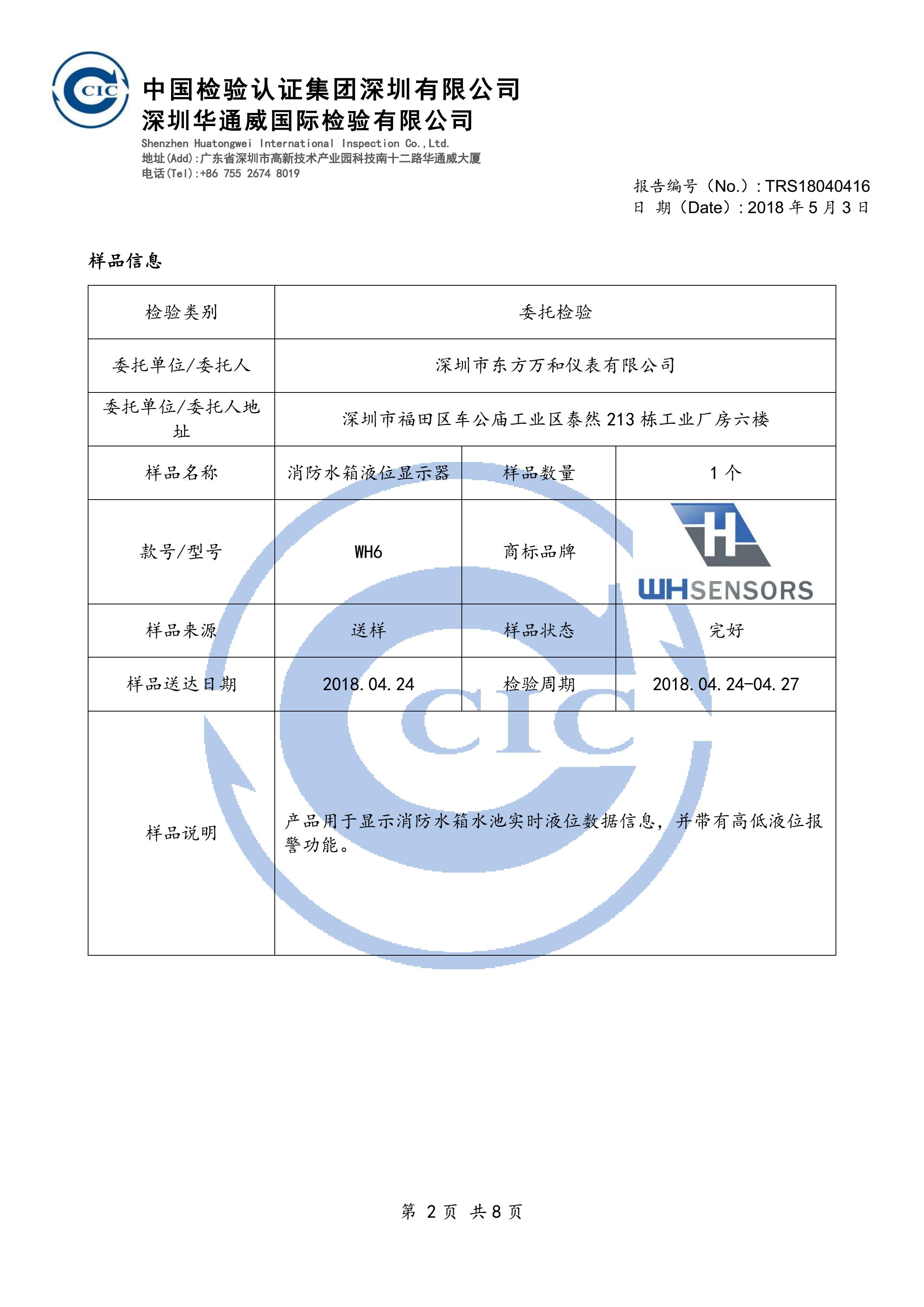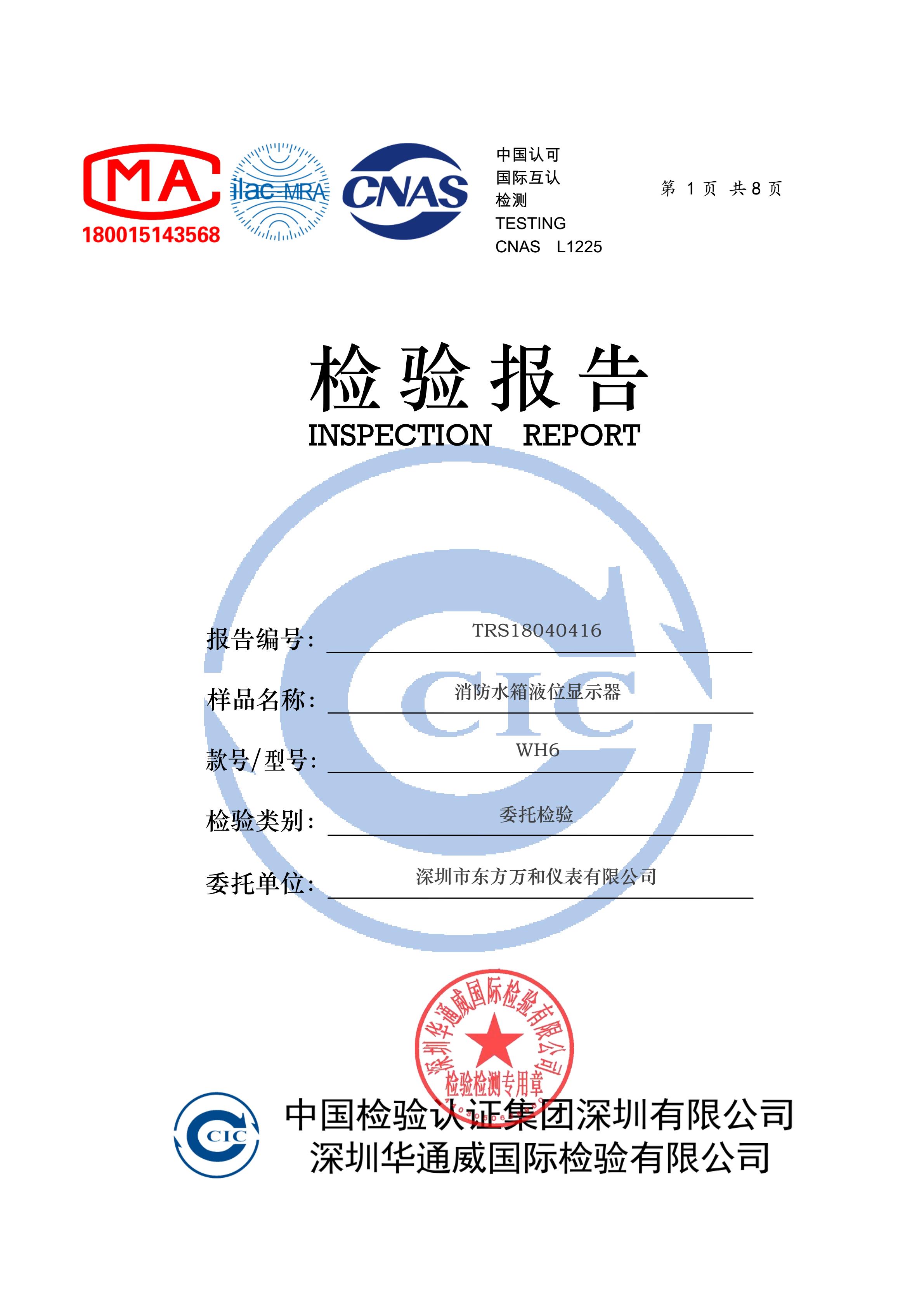消防水箱(池)液位显示器顺利通过中国检验集团产品检验报告!