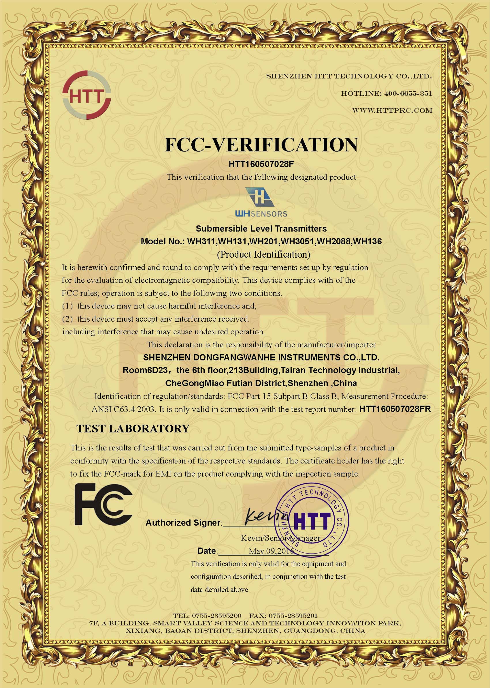 热烈祝贺深圳市东方万和仪表取得FCC认证
